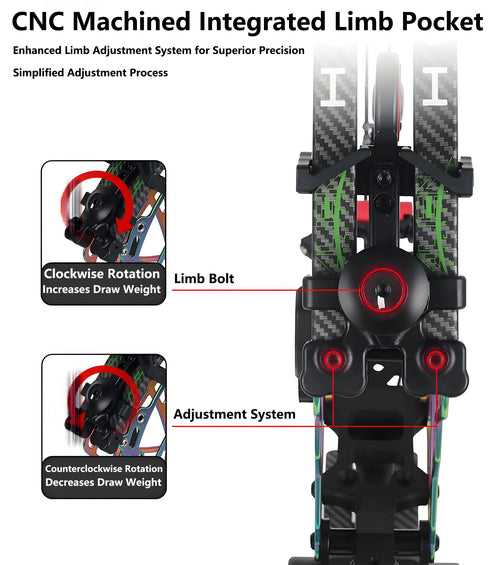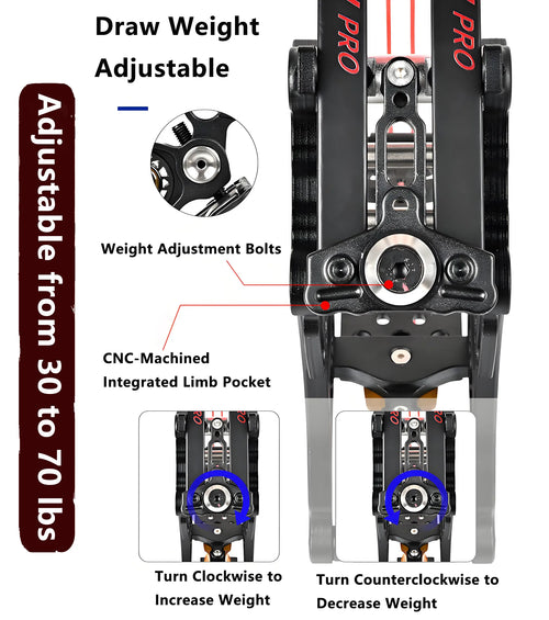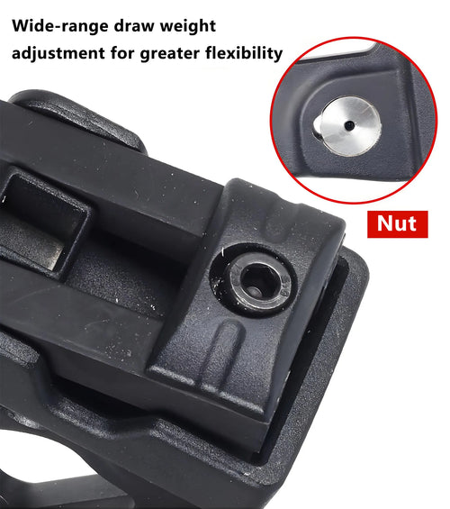 Our TakeawayïŒWe made versatility easy. OurTool-Free Adjustable Weight Systemlets you turn a knob to drop the poundage. Perfect for growing archers, practice sessions, or anyone who shares their rig.