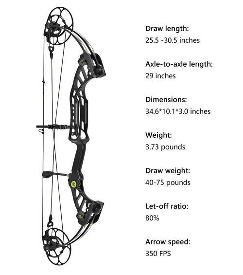 shop nowMeet the Slim Waist Compound Bow! With multi-bow vibration dampeners, wind tunnel shock absorption, S-laminated limbs (no wire jumping or bursting), and an 80% let-off wheel system, it delivers powerful, stable performance for outdoor hunting/shooting. Adjustable draw length (25.5-30.5"), 350FPS arrow speed, and durable CNC construction.