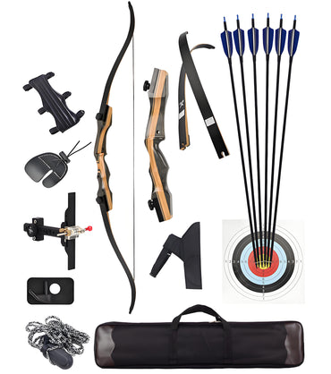 Expertly crafted takedown recurve bows, blending wooden risers with laminated limbs for smooth performance. Perfect for archers of every level.