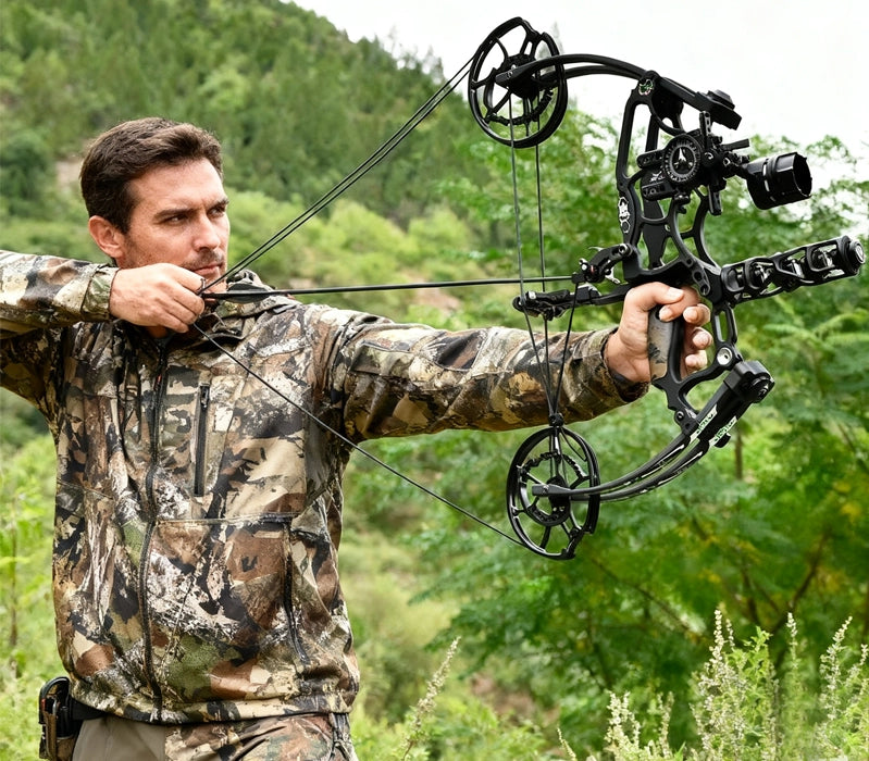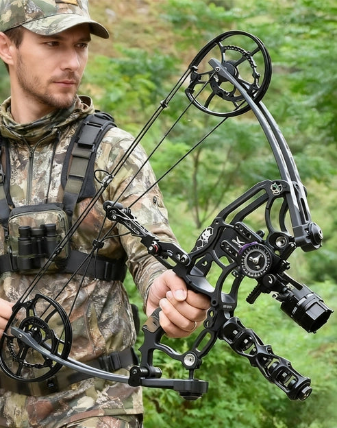 Experience the Shadow Dual-Purpose Compound Bow! With CNC machining, 45-75lbs adjustable draw weight, 380FPS steel ball speed, and an 80% let-off wheel system, it offers unmatched power, precision, and durability. Perfect for hunting and target shooting.