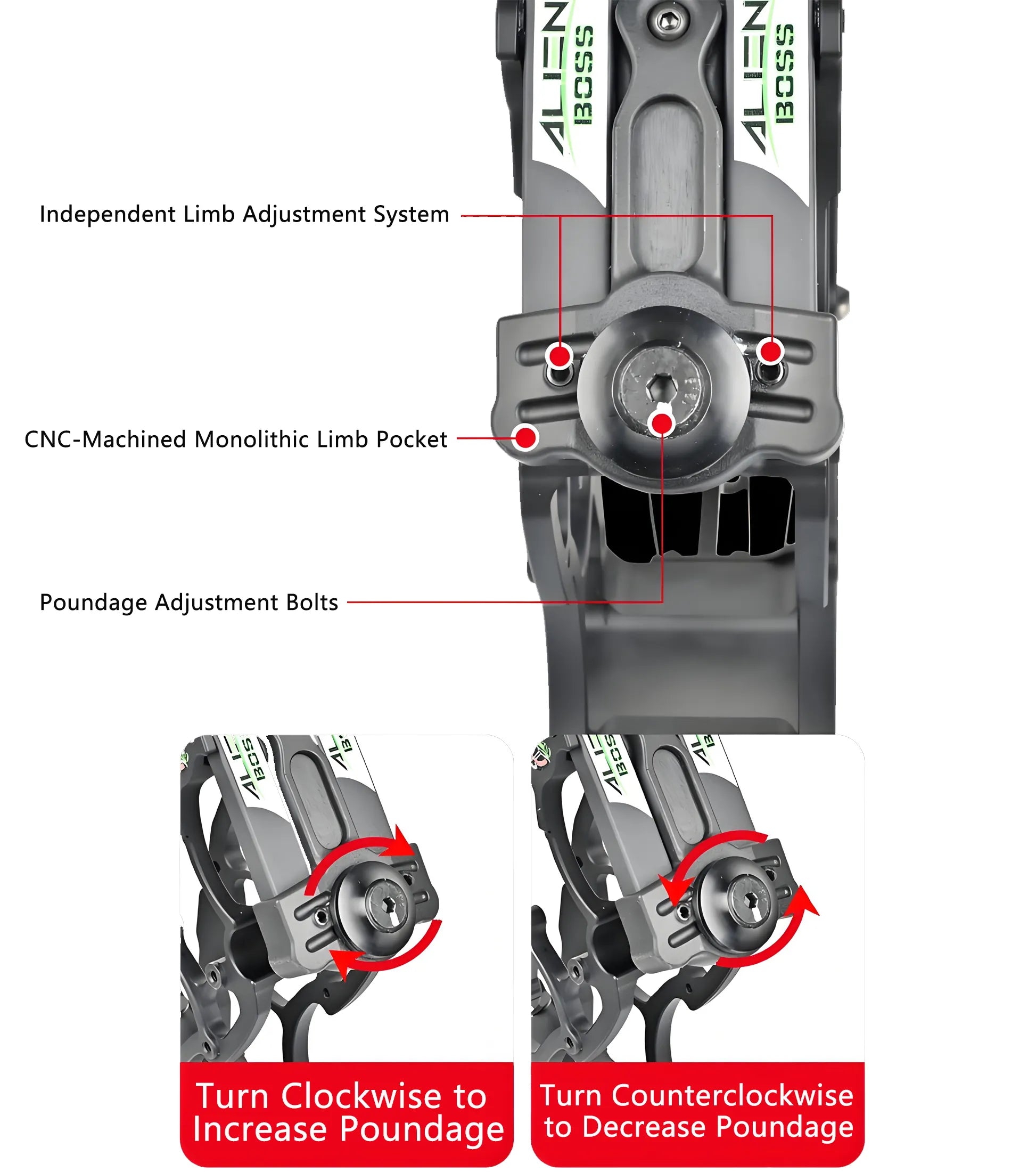 Integrated Limb System: Features independent limb adjustment and solid limb pockets for safe, reliable tuning and consistent power delivery. The laminated limbs are built to resist splintering and delamination.