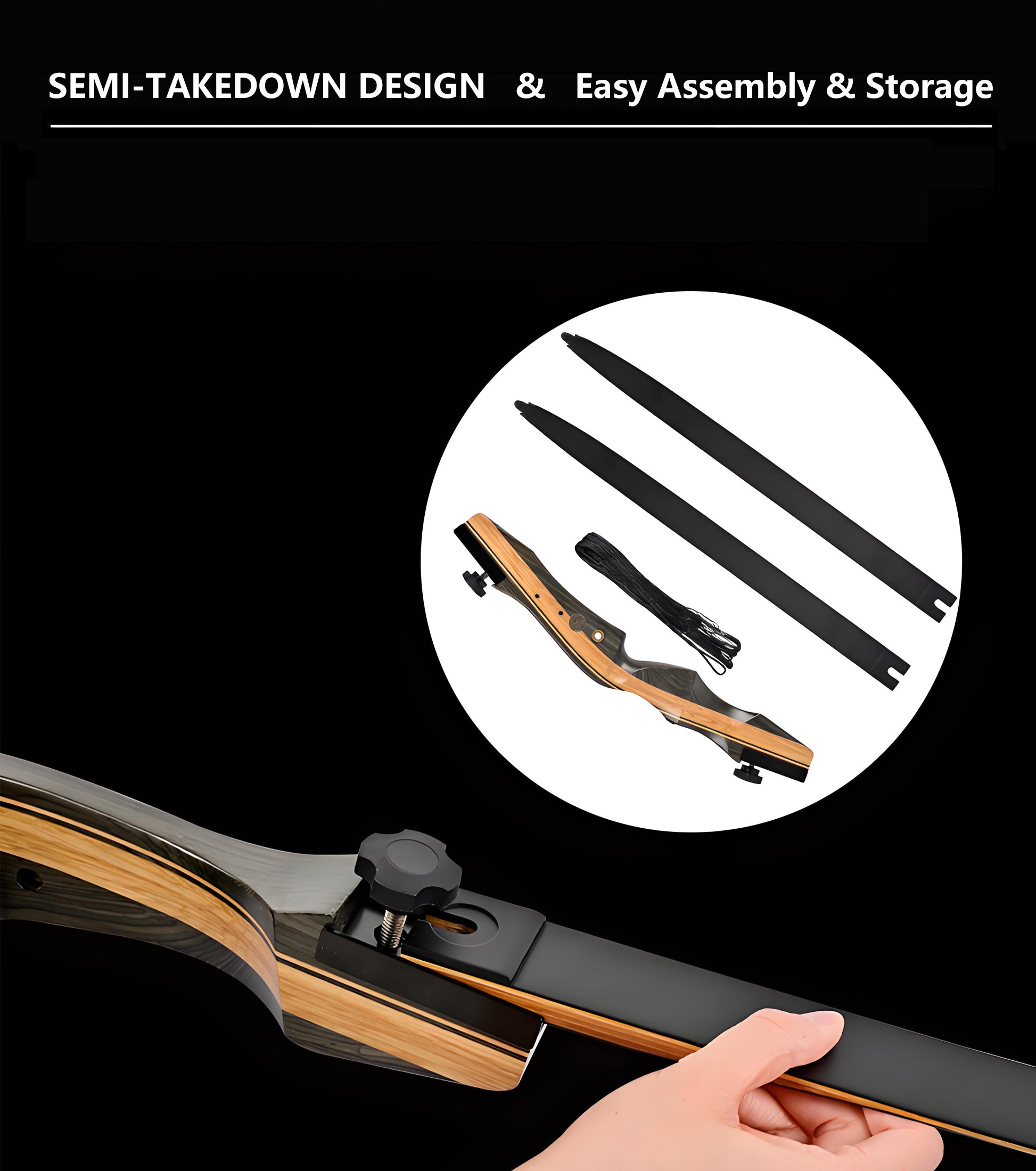 True Semi-Takedown Design: The innovative limb pocket system uses hand-tightened thumb screws for tool-free assembly and disassembly in seconds. This makes the bow incredibly portable and easy to store. The limb tips feature string grooves that automatically re-center the string upon release for consistent shooting.